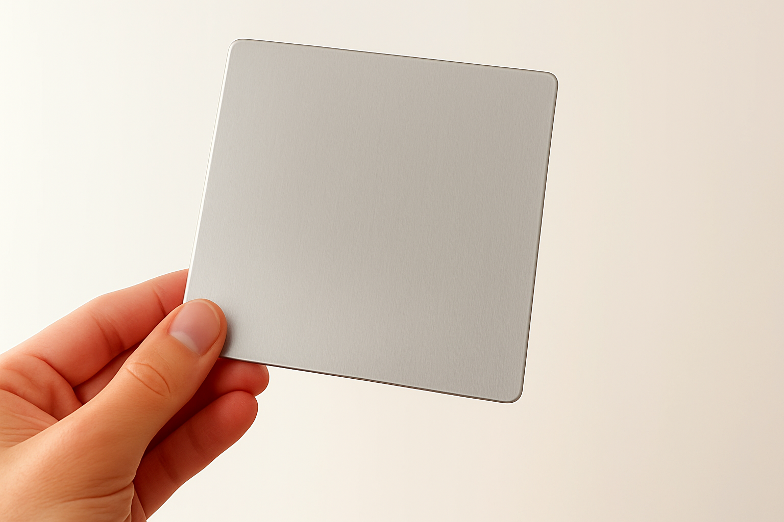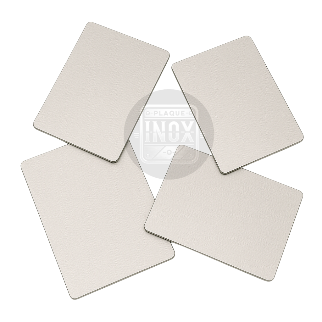 L’échantillon de plaque inox lisse alimentaire (brut) met en avant l’état d’origine de la tôle inox 304L. Cette finition correspond à la surface brute, sans polissage ni traitement esthétique supplémentaire. Elle présente un aspect sobre et uniforme, apprécié pour sa neutralité et sa polyvalence.